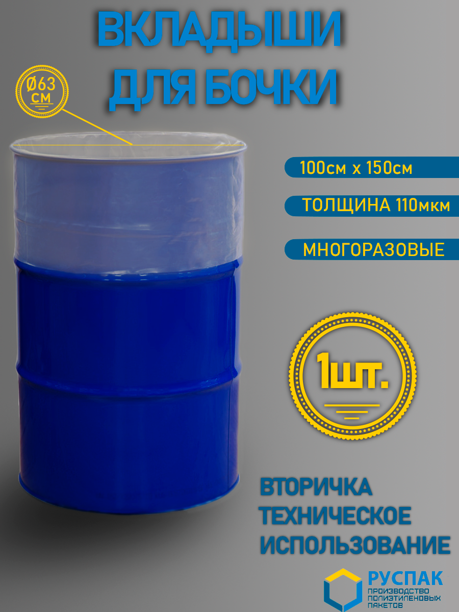 СохранитьВкладыш в бочку вторичка, тех.нужд (100см, 150см, 110мкм, 250л, 1шт) интересное: