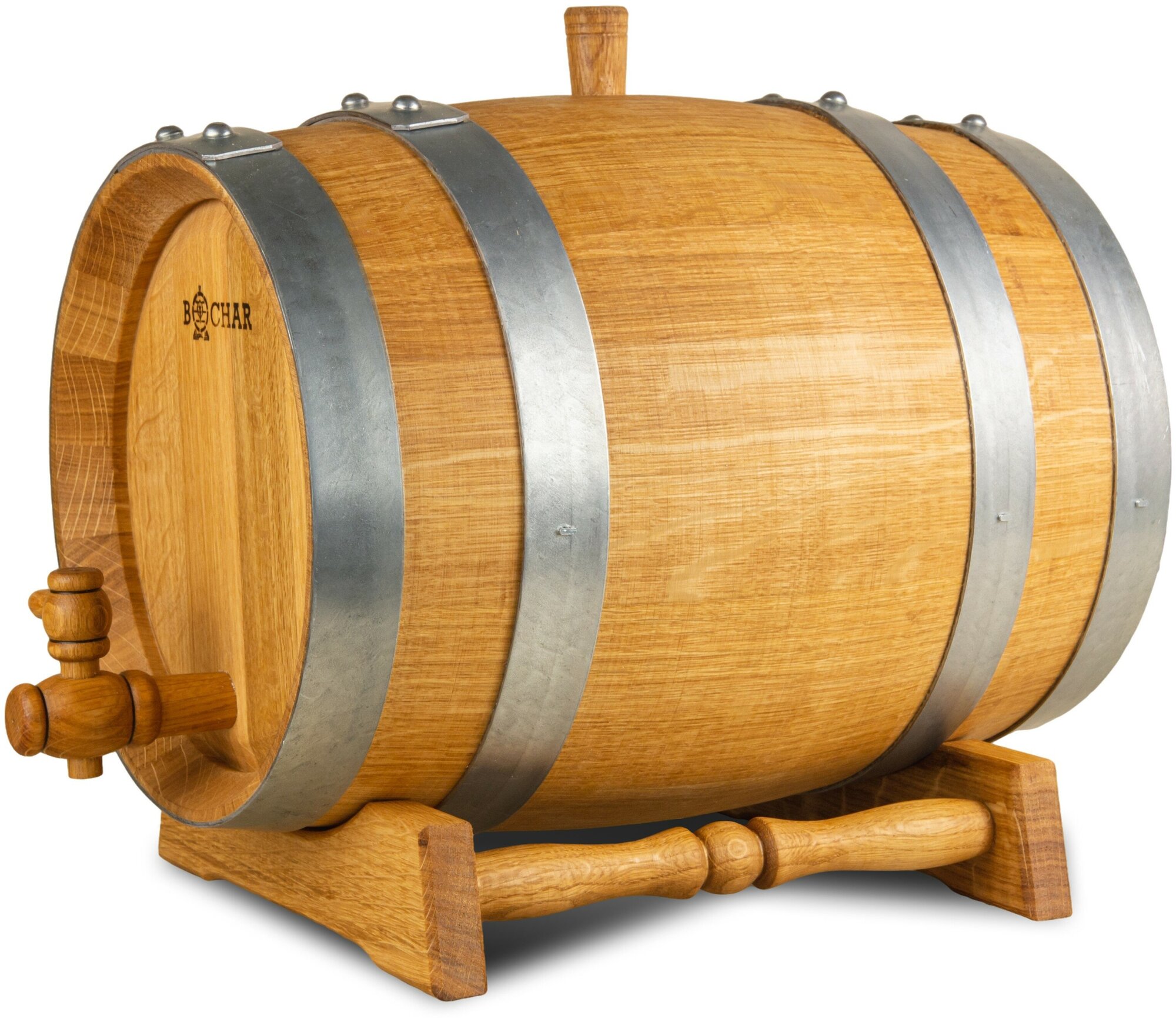 Бочка дубовая 10 литров (сильный обжиг) "Бочар" с краником и подставкой, ГОСТ 8777-80