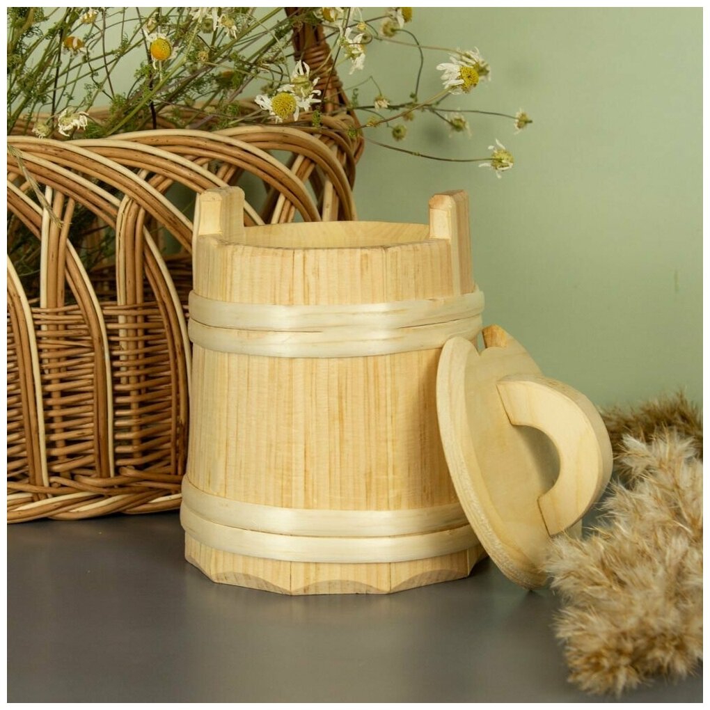 Кадка кедровая 1 л Бочонок для мёда, без замка интересное:
