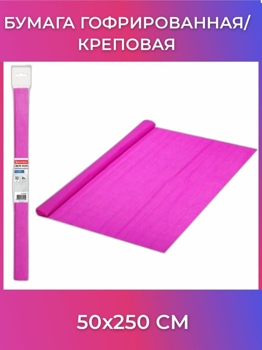 СохранитьБумага гофрированная/креповая, 32 г/м2, 50х250 см, фуксия, в рулоне, BRAUBERG, 112518 интересное: