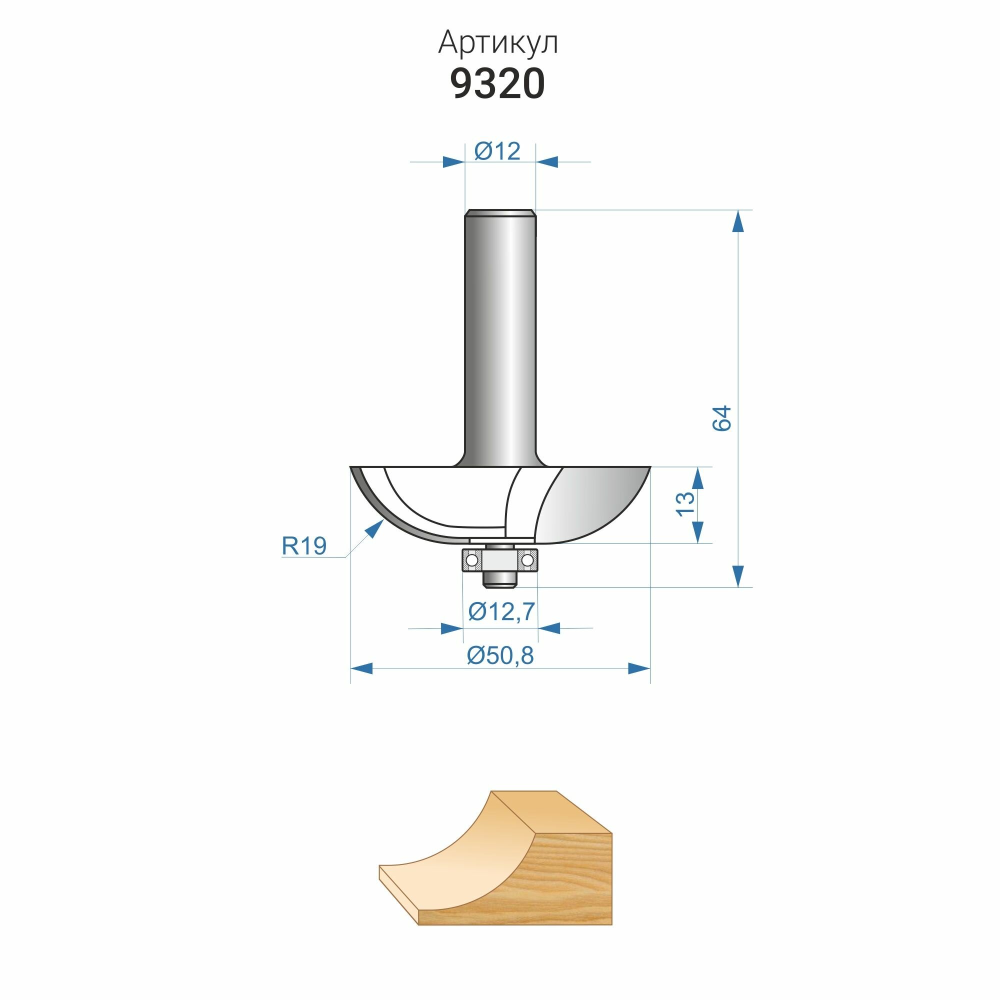 9321 Фреза фигирейная горизонтальная (51х13 мм; R 9.5 мм; хвостовик 12 мм) по дереву Энкор