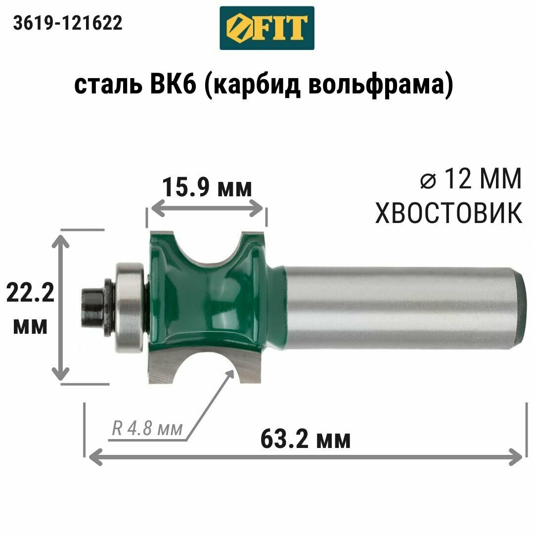 Купить Фреза кромочная полукруглая (22.2х15.9х63.2 мм) FIT 3619-121622