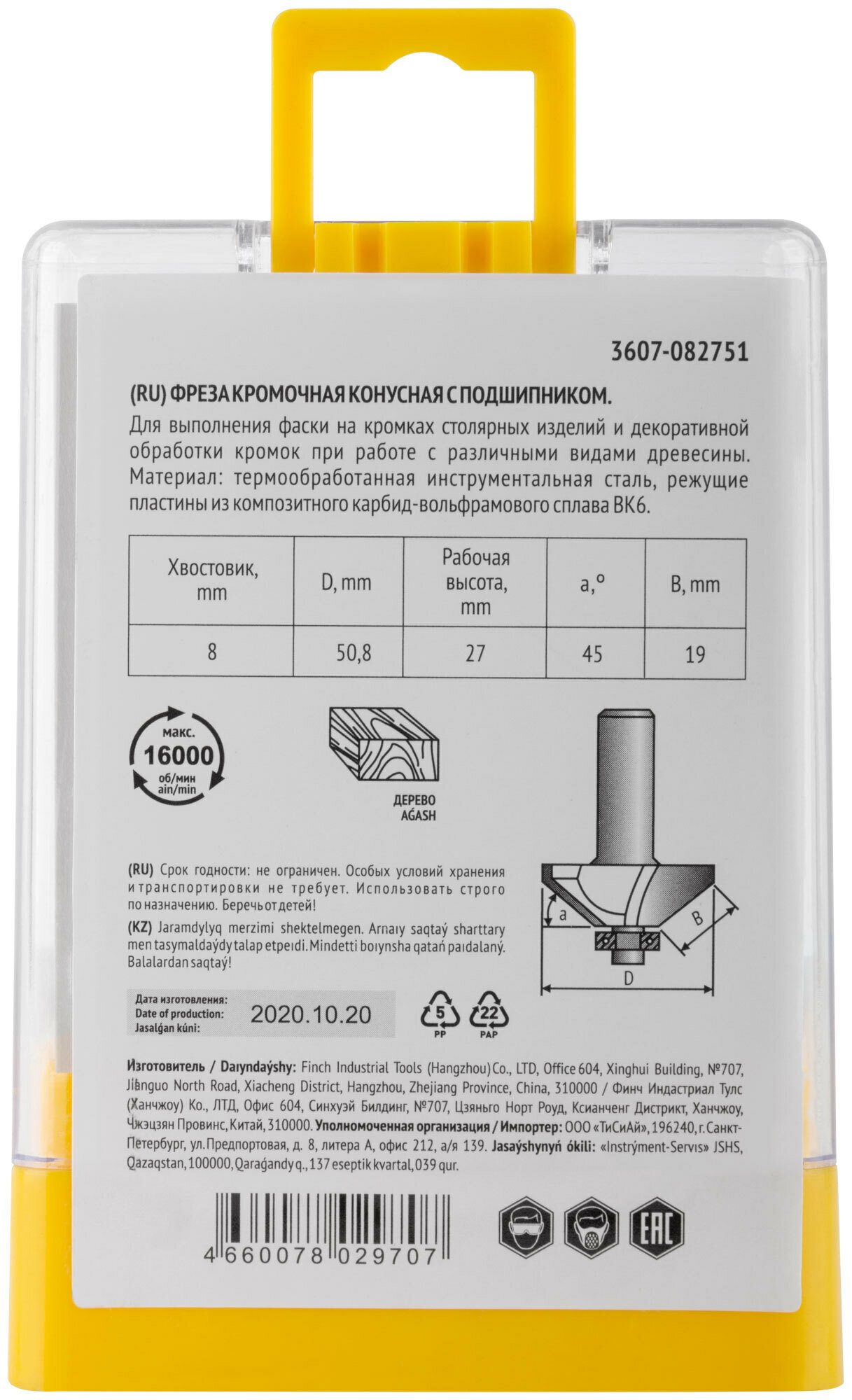 Фреза кромочная конусная с подшипником (50,8х27х65,3 мм) FIT