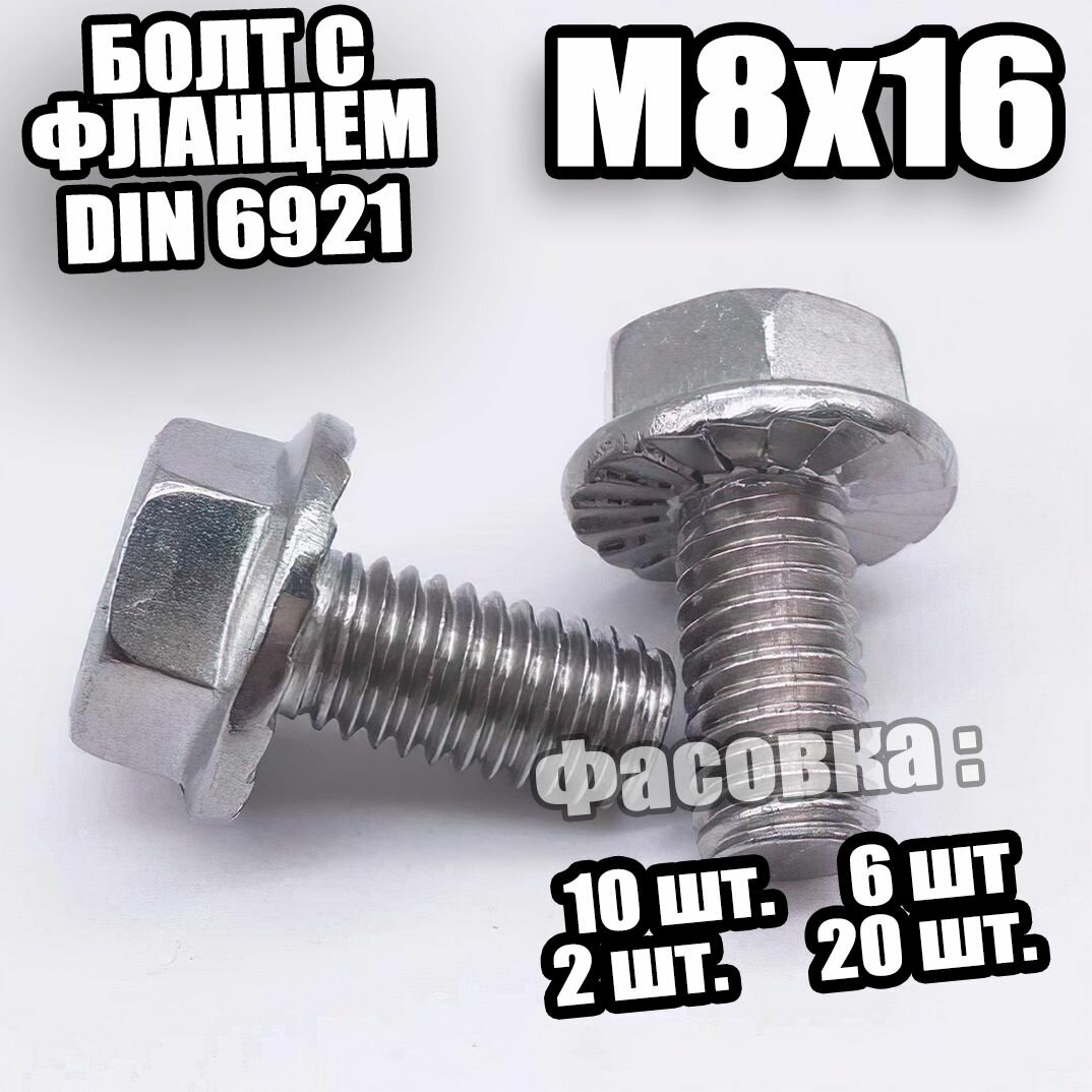 Болт М8х16 с фланцем, DIN 6921, 10.9, оцинкованный, 10 шт. интересное: