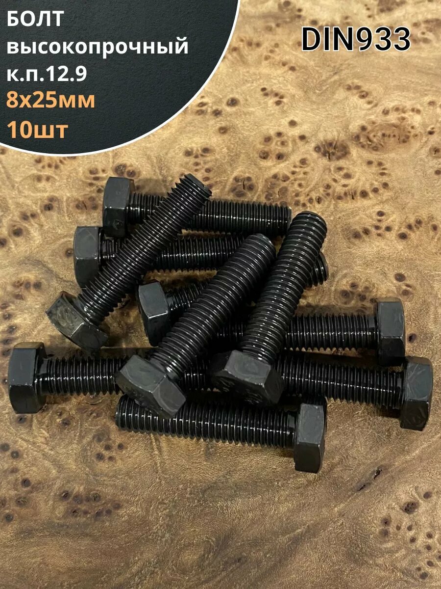 Купить Болт М8х25 мм, DIN933, высокопрочный 12.9, 10шт.