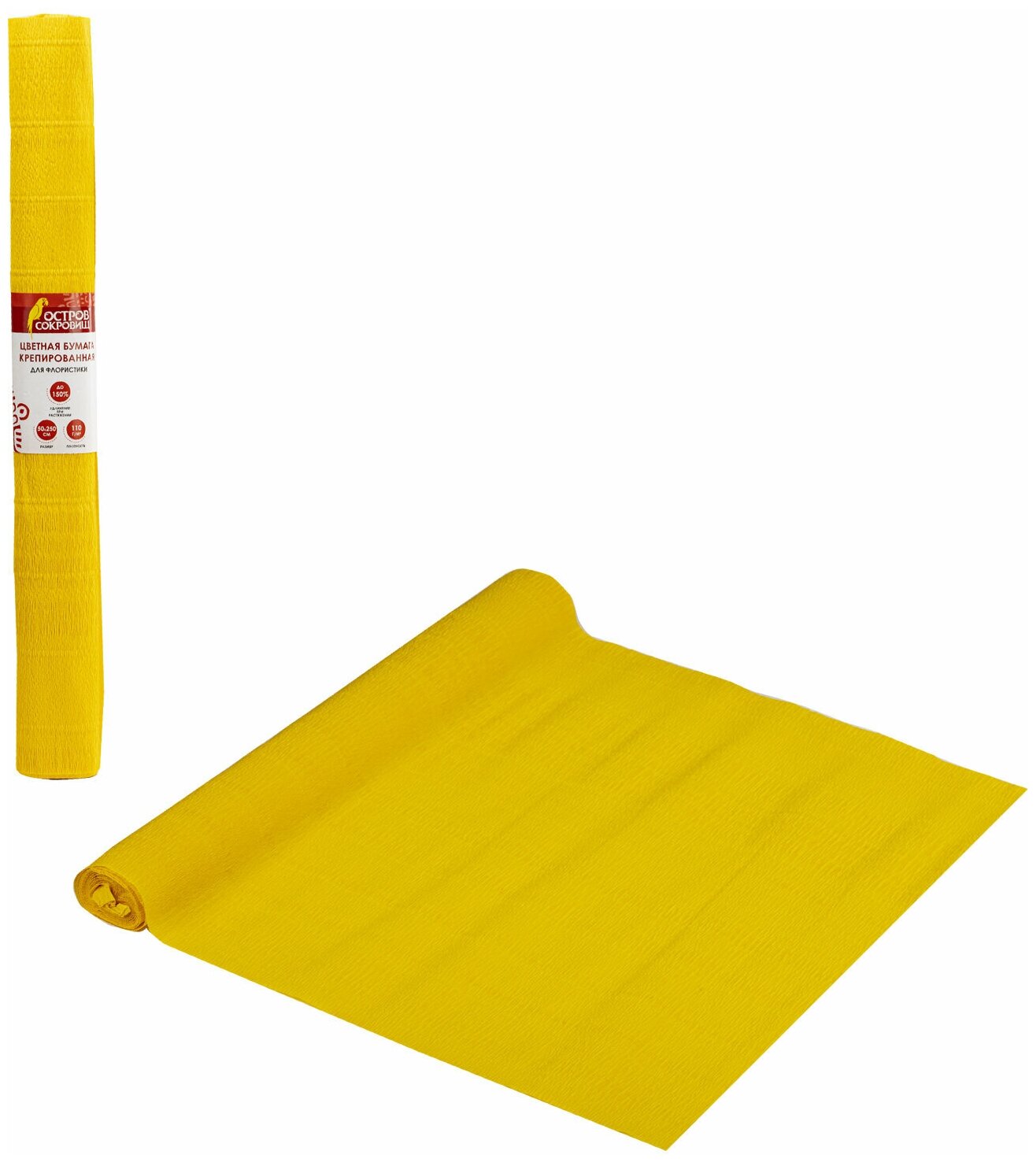 Бумага гофрированная/креповая, 110 г/м2, 50х250 см, желтая, остров сокровищ, 129146 Комплект : 1 шт .