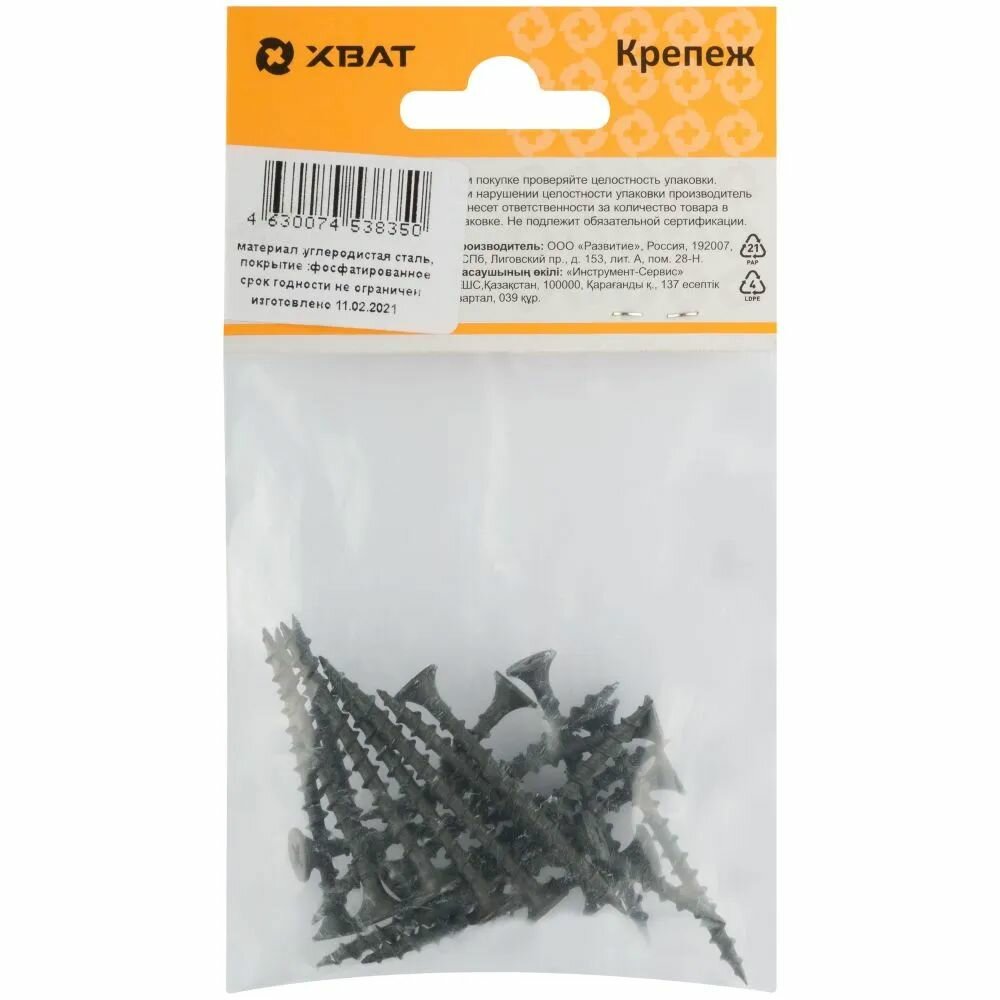 Саморез 3.5х25мм по дереву для ГКЛ черный (30шт.) Хват