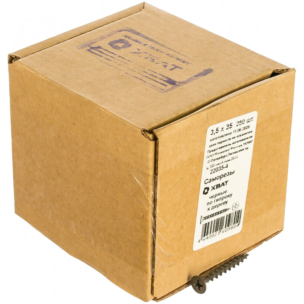 Саморез 3.5х25мм по дереву для ГКЛ черный (30шт.) Хват