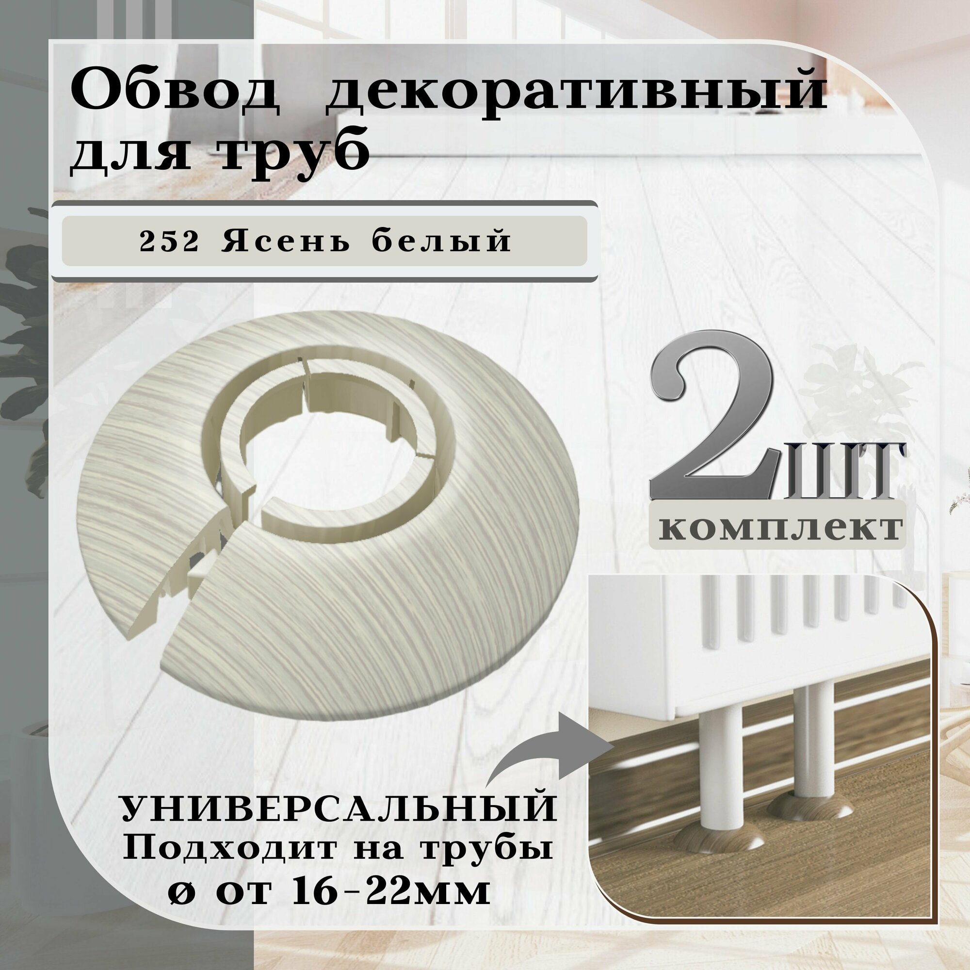 СохранитьОбвод универсальный IDEAL(Идеал) ясень белый, накладка (розетта) для труб 16 - 22 мм - 2 шт. интересное: