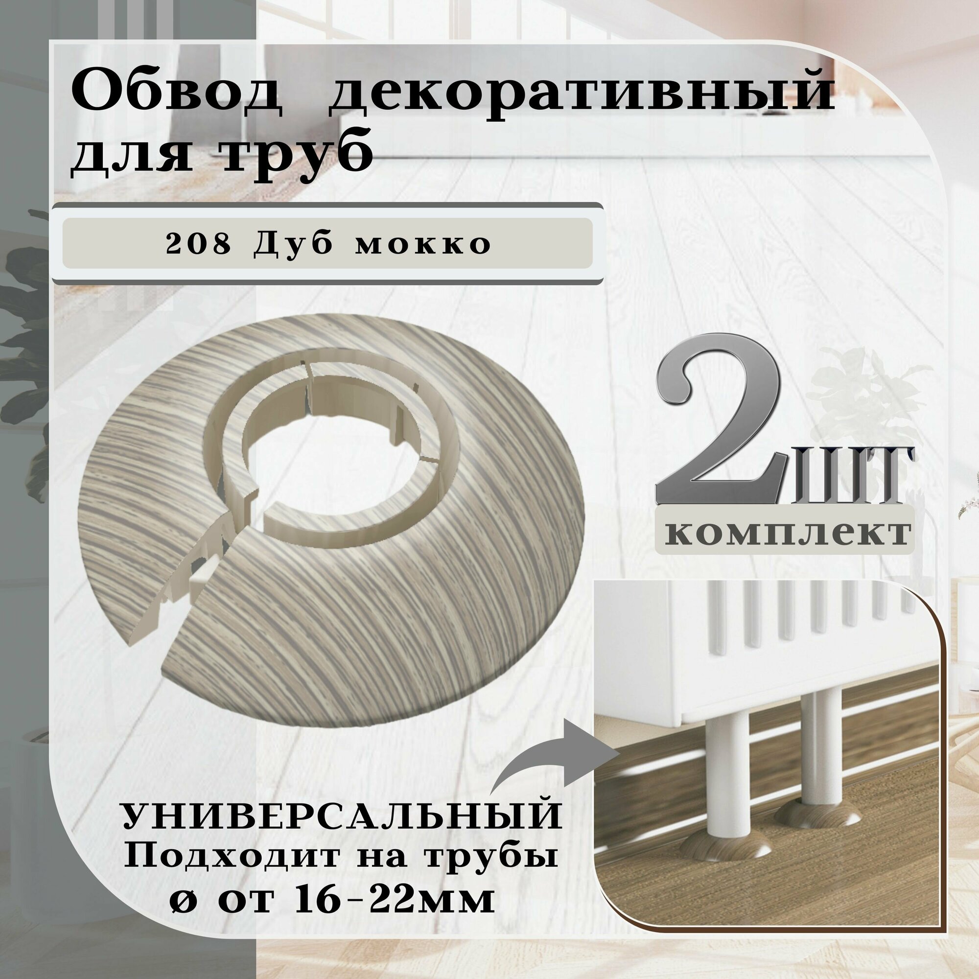 СохранитьОбвод универсальный для труб Ф16-22мм "Идеал" (2шт. во флоупак), 208 Дуб мокко интересное: