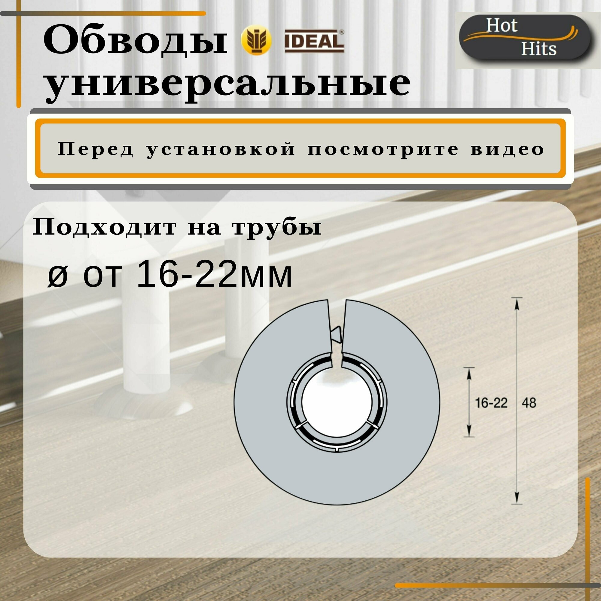 Обвод универсальный IDEAL(Идеал) ясень белый, накладка (розетта) для труб 16 - 22 мм - 2 шт.