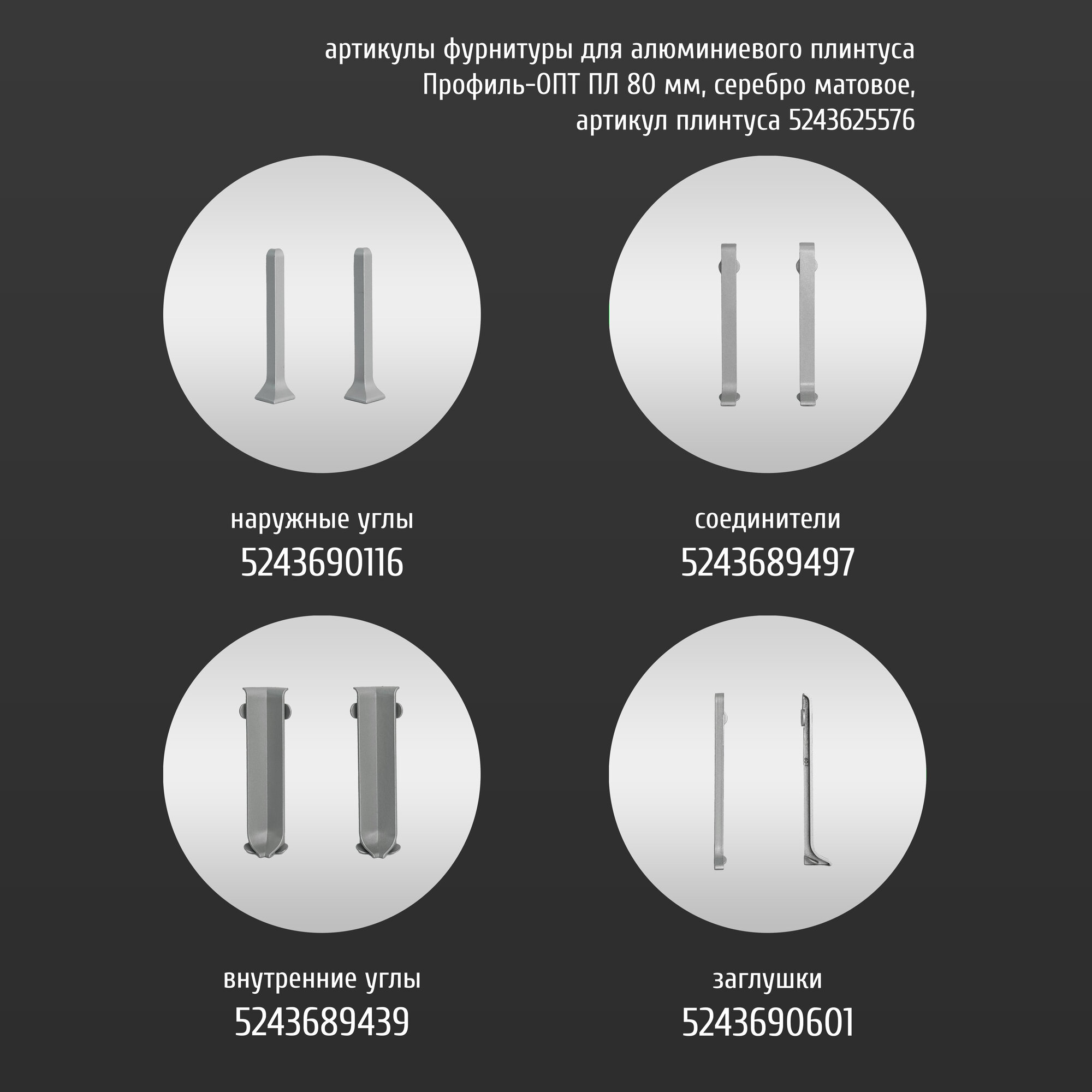 Купить Заглушка для алюминиевого плинтуса Профиль-ОПТ ПЛ 80, высота 80 мм, серебро матовое, 2 шт.