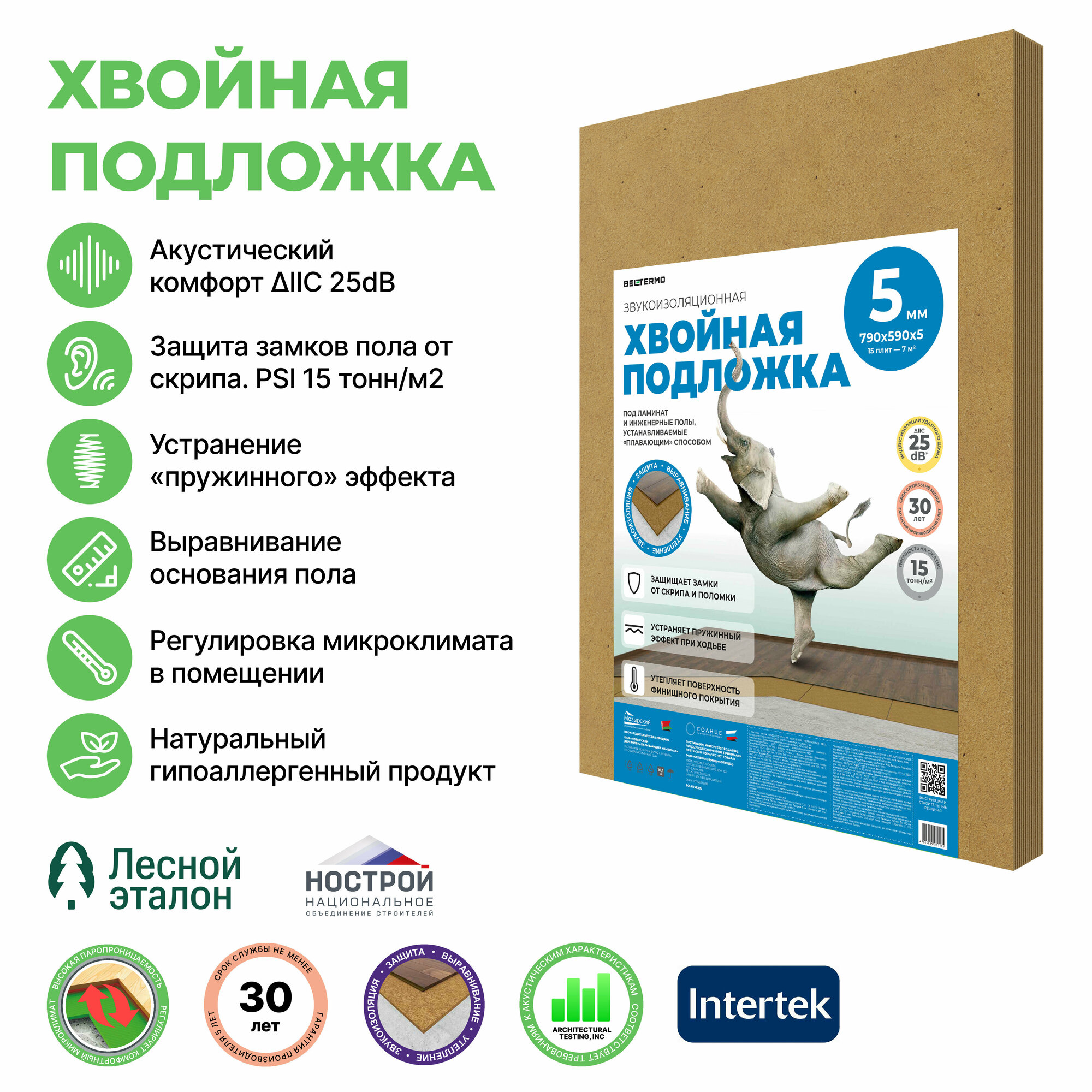 Подложка хвойная для ламината и паркета Beltermo 5 мм (15 листов/7 кв. м)