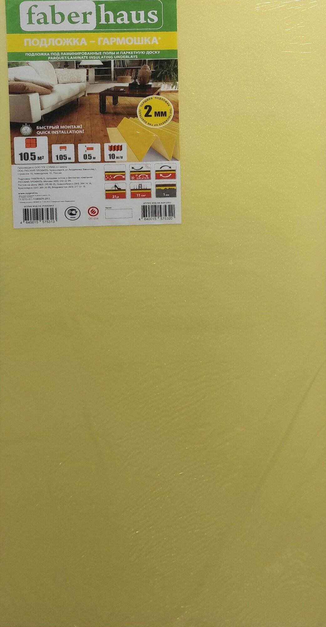 Купить Подложка-гармошка под ламинированные напольные покрытия и паркетную доску Faberhaus 2мм (10,5м2)