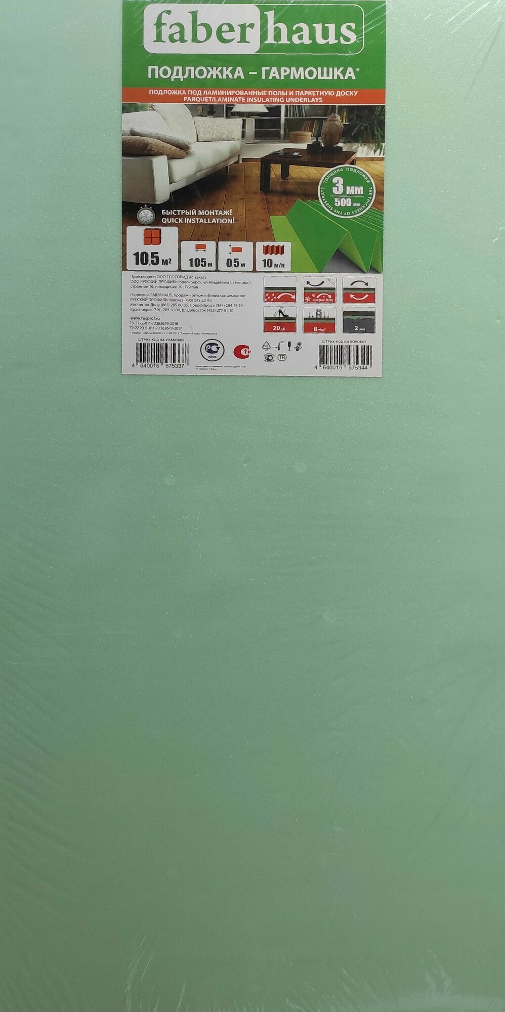 Подложка-гармошка зеленая под ламинированные полы и паркетную доску Faberhaus 3 мм (10,5 м2) интересное:
