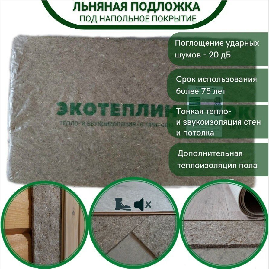 Льняная подложка Экотеплин 1000*600*5 мм (7,2 м²/уп) интересное: