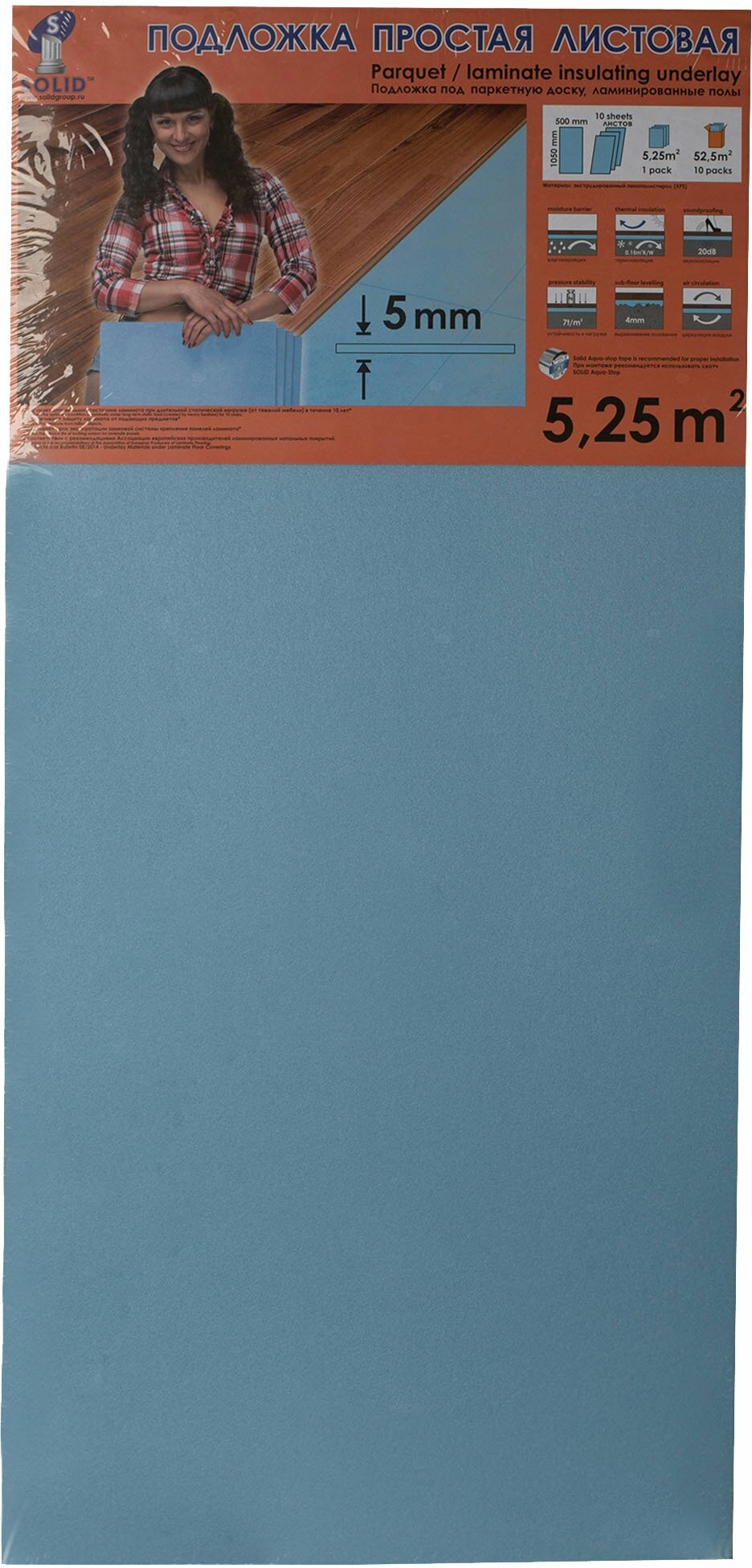 Подложка под ламинат и паркет XPS Solid 5 мм 0,5х1,05 м 5,25 кв.м интересное:
