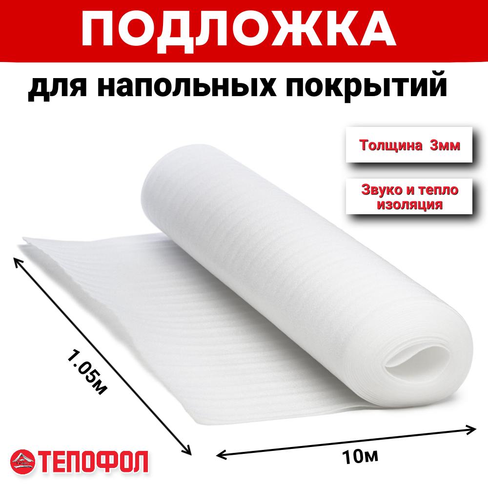 СохранитьПодложка под напольное покрытие тепофол 3мм (10.5м2), вспененный полиэтилен для теплоизоляции интересное: