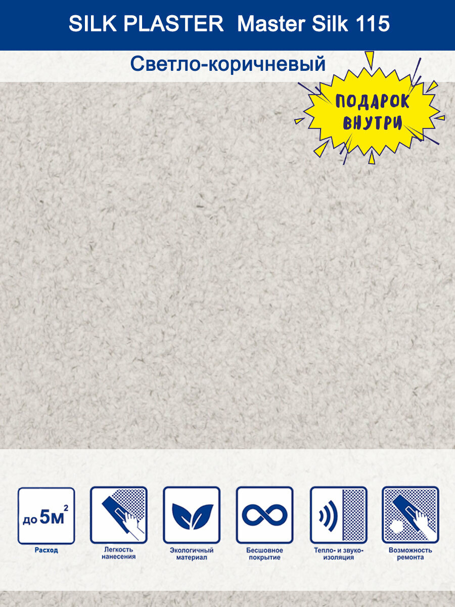 Жидкие обои Silk Plaster "Master Silk" MS-115, светло-коричневые, износостойкие, 0,7кг