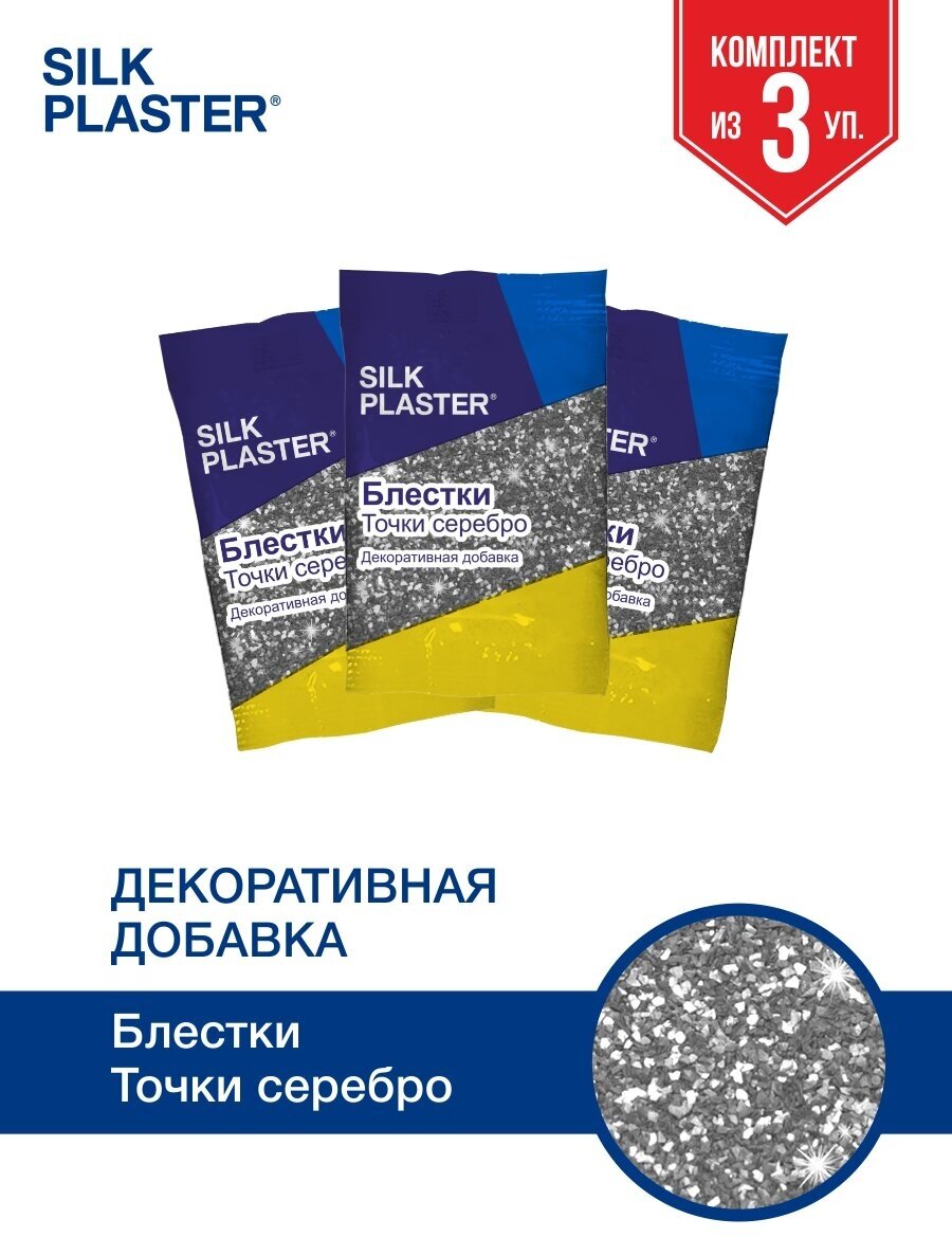 Купить Блестки (декоративная добавка для жидких обоев), серебро, точка 3 шт
