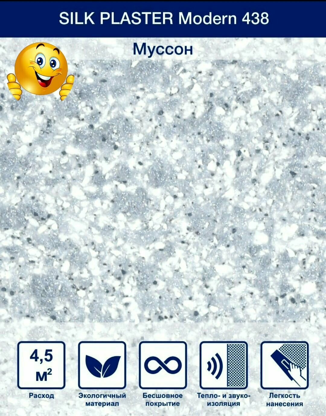 СохранитьЖидкие обои модель Модерн ( Modern) 438, Муссон, с мелко- серебристыми блёстками, 1000 грамм. интересное: