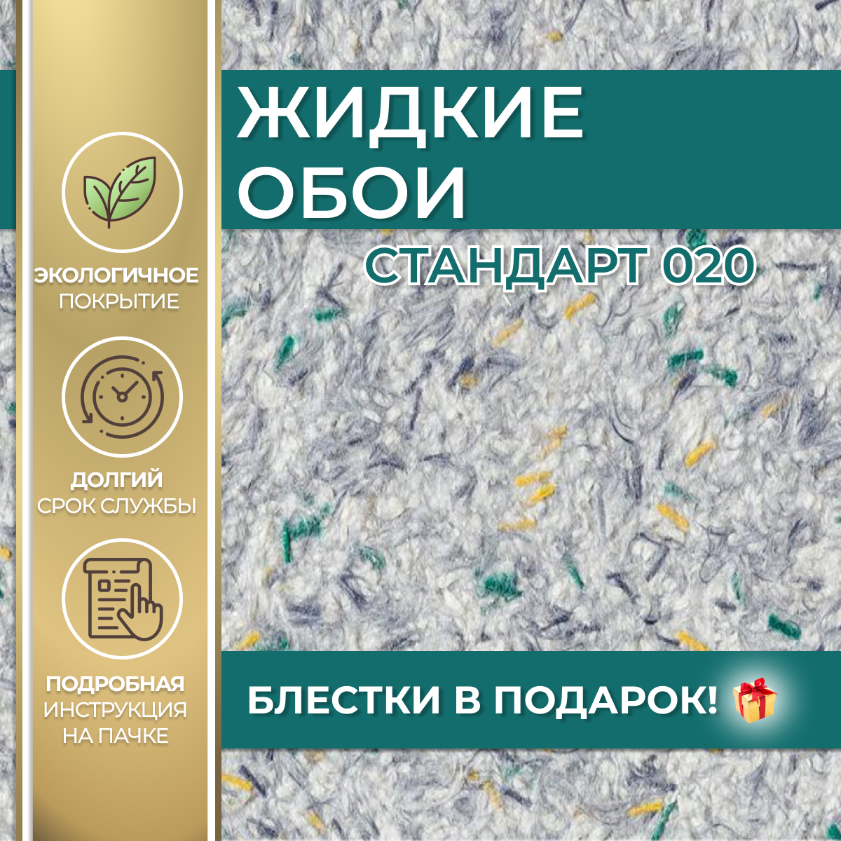 Жидкие обои Silk Plaster Стандарт Standart 015, зеленый с красно-желтыми вкраплениями