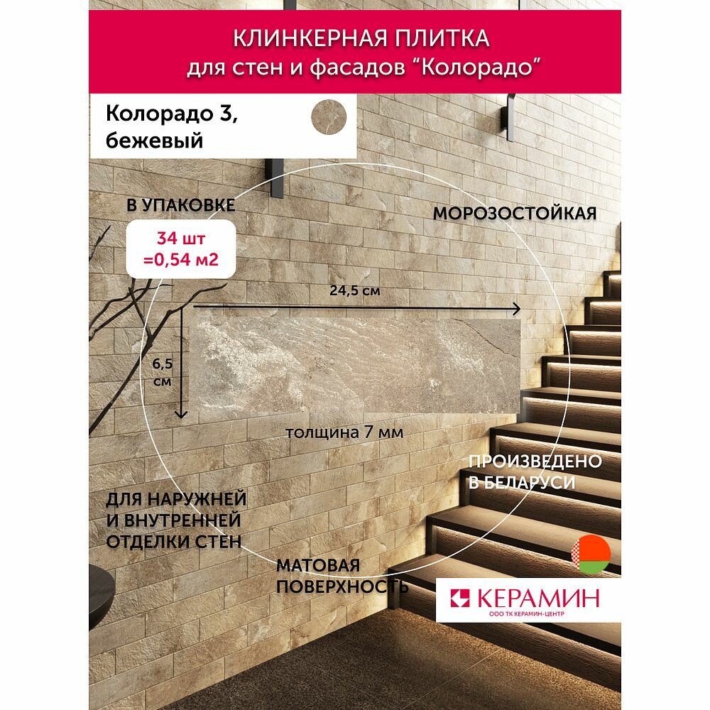 Плитка клинкерная Керамин Колорадо 3 бежевый 24.5x6.5 см (34 шт 0.54 м2) интересное:
