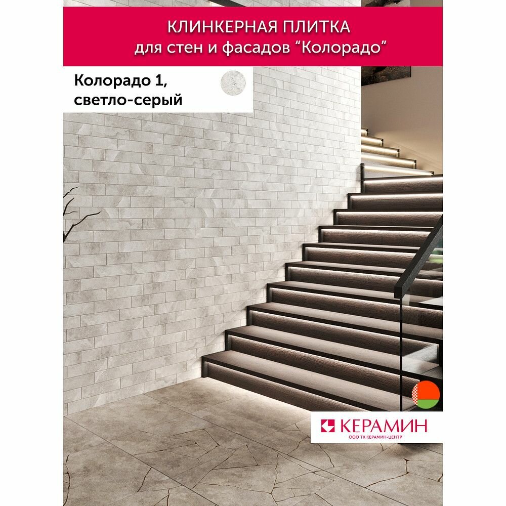 Плитка клинкерная Керамин Колорадо 1 светло-серый 24.5x6.5 см (34 шт 0.54 м2) интересное:
