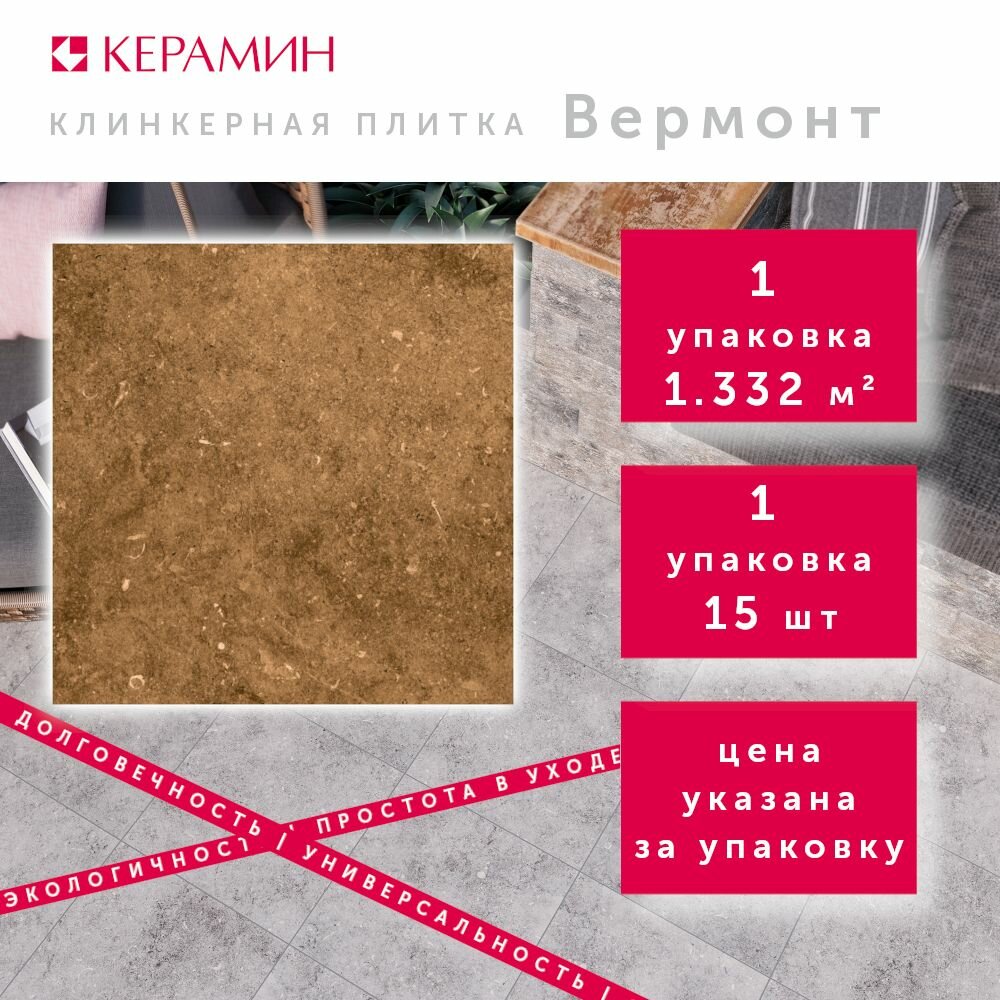 СохранитьКерамин Вермонт 4 керамогранит 298х298х8мм (15шт) (1,332м2) коричневый / керамин Вермонт 4 керамогранит 298х298х8мм (упак.15шт) (1,332кв.м) матовый интересное: