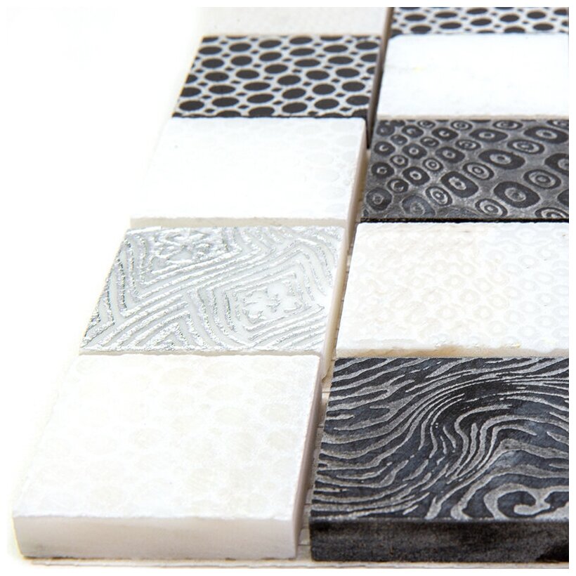 Мозаика Skalini VGS-2 из глянцево-матового (микс) мрамора размер 30х30 см чип 48x48 мм толщ. 10 мм площадь 0.09 м2 на сетке интересное: