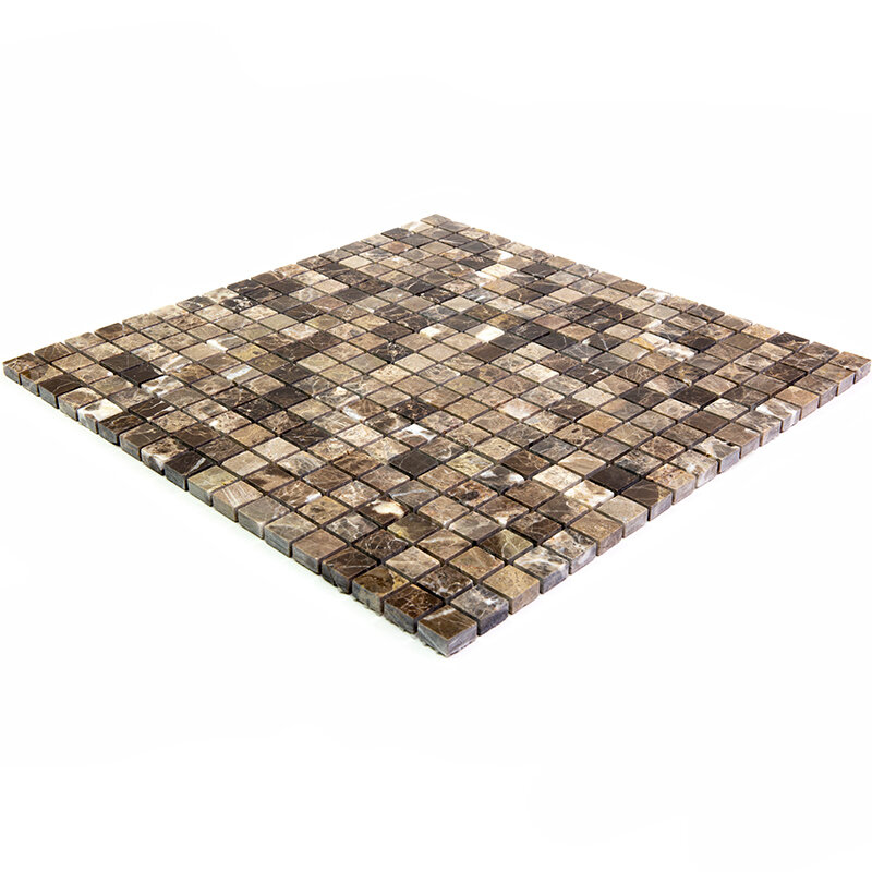 Купить Мозаика Natural 4M022-15P-Emperador-Dark из глянцевого мрамора размер 29.8х29.8 см чип 15x15 мм толщ. 4 мм площадь 0.089 м2 на сетке