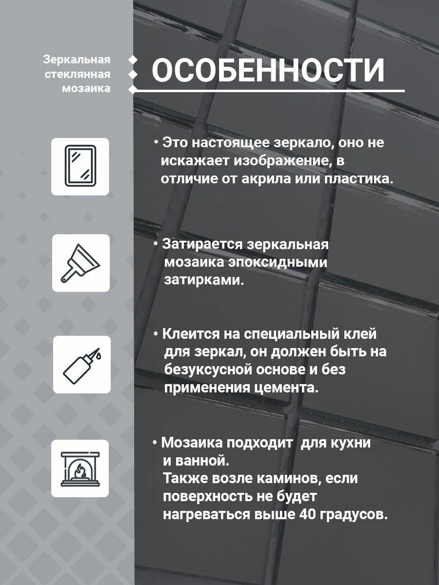 Зеркальная плитка мозаика на стену и потолок 30х30см 1 шт (0.09 м.кв) / Зеркальные панели для кухни и ванной интересное:
