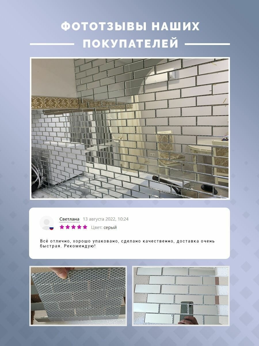 Ниже Вы можете прочитать отзывы на Зеркальная плитка мозаика на стену 30х30см 3шт (0.27 кв.м.) / Зеркальные панели дял кухни и ванной, ознакомится с подробными характеристиками, посмотреть интересные обзоры и фотографии на Зеркальная плитка мозаика на стену 30х30см 3шт (0.27 кв.м.) / Зеркальные панели дял кухни и ванной.