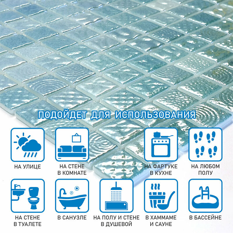 Мозаика Natural STP-BL014 из глянцевого стекла размер 31.5х31.5 см чип 25x25 мм толщ. 5 мм площадь 0.099 м2 на сетке