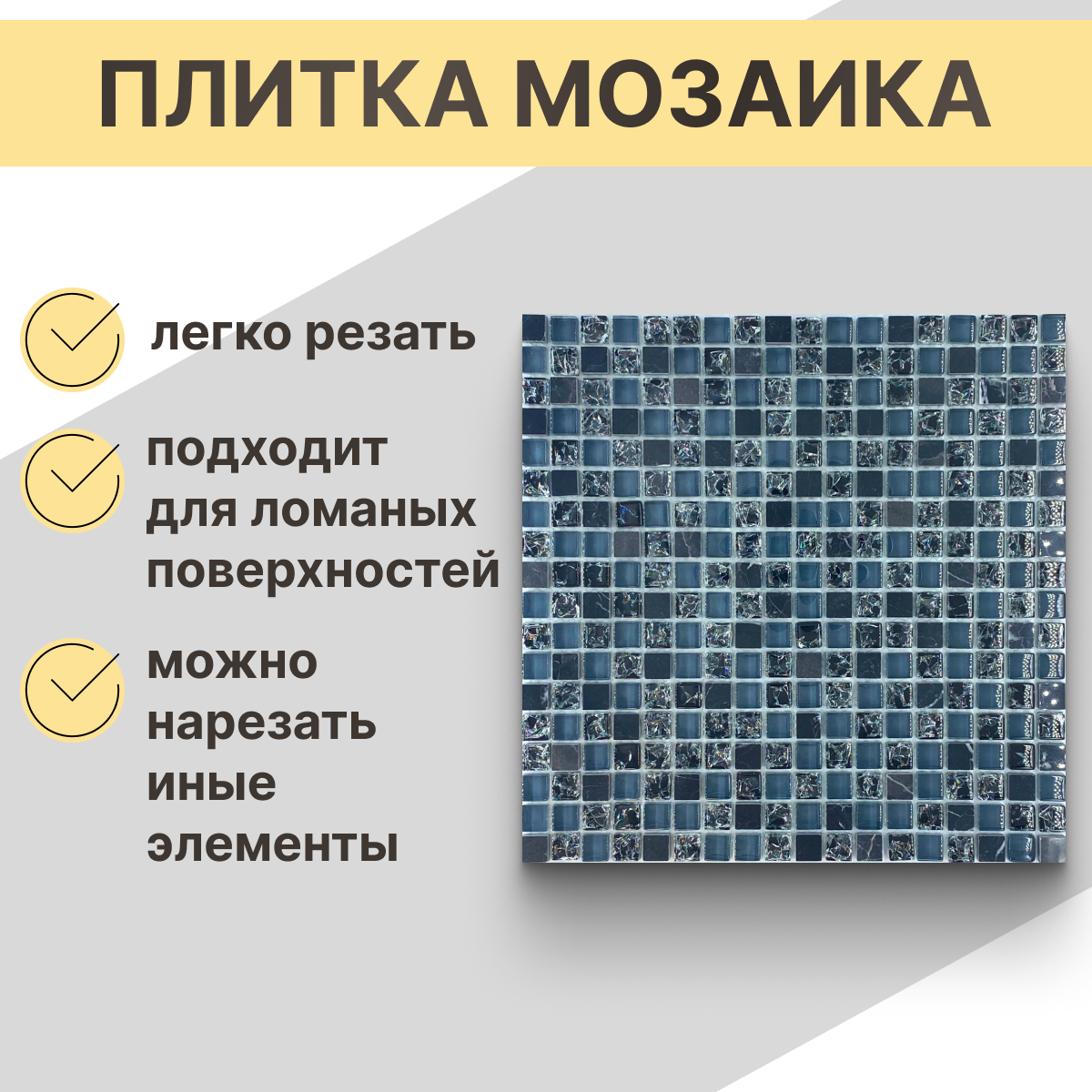 Мозаика Natural STP-BL014 из глянцевого стекла размер 31.5х31.5 см чип 25x25 мм толщ. 5 мм площадь 0.099 м2 на сетке