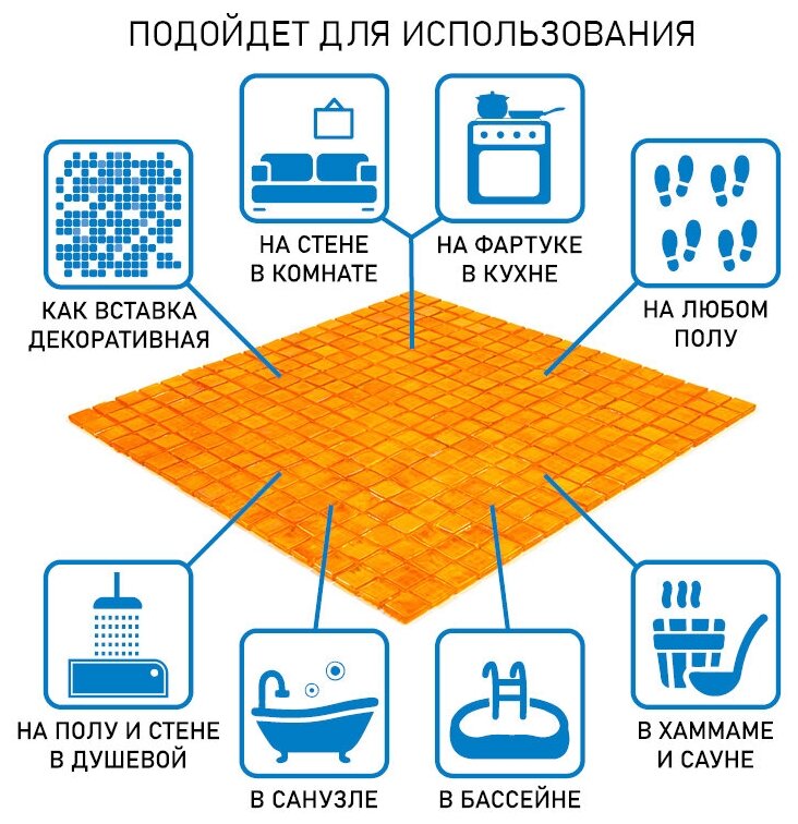 Мозаика одноцветная чип 15 стекло Alma NN87 оранжевый квадрат глянцевый перламутр интересное: