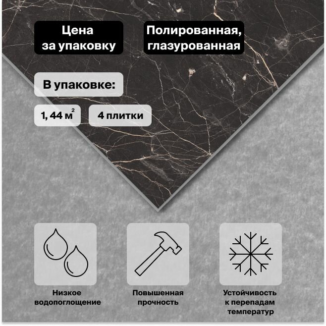 Керамогранит Laparet Black Arkadia черный полированный 60х60 см (1.44 м2) интересное:
