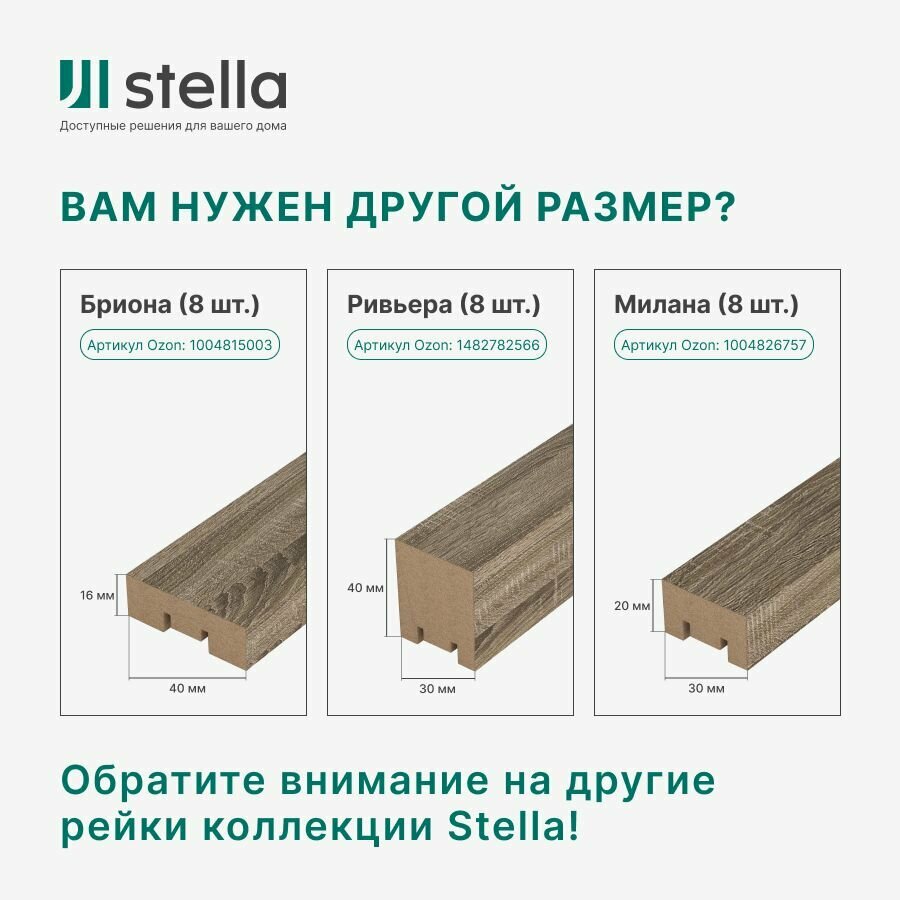 СохранитьStella Рейка интерьерная МДФ декоративная, как деревянная; для стен, зонирования комнаты, детской, потолка, для перегородки или ниши; Форма Бриона Цвет Дуб Винтаж 2700*40*16 мм (упаковка 8 штук) интересное: