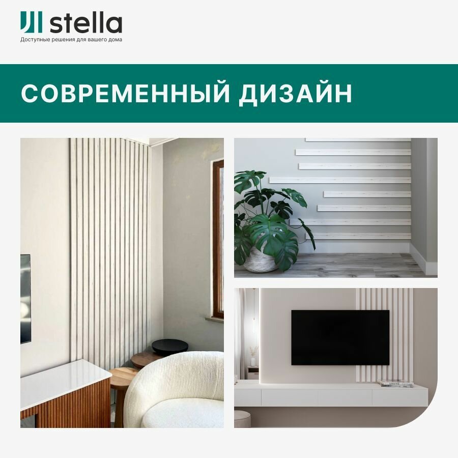 СохранитьStella Рейка интерьерная МДФ декоративная, как деревянная; для стен, зонирования комнаты, потолка, для перегородки или ниши; Форма Бриона Цвет Дуб Санремо Белый 2700*40*16 мм (упаковка 8 штук) интересное: