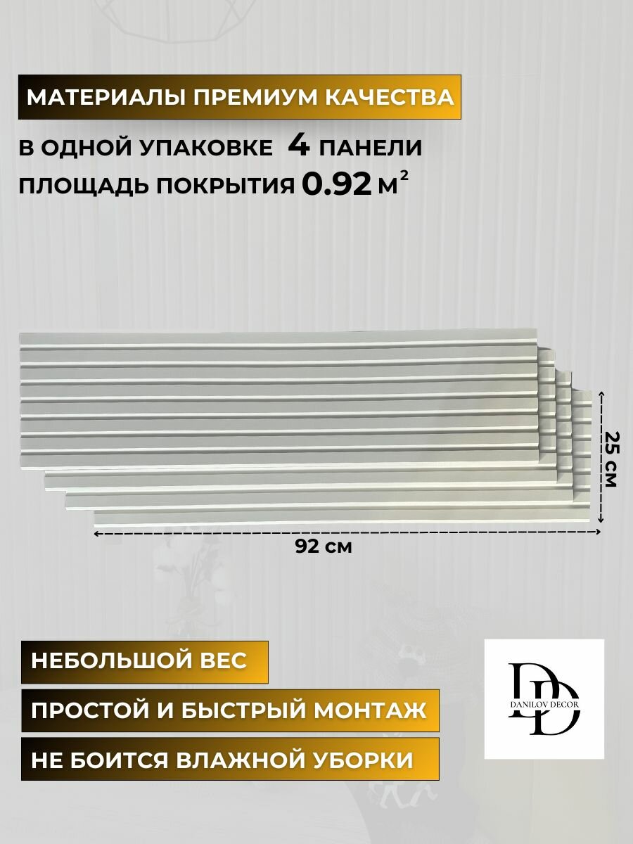 Панель МДФ, Декоративные панели на стену, Стеновые панели 3D МДФ "Бергамо"рейки олово в комплекте 4 шт DanilovDecor