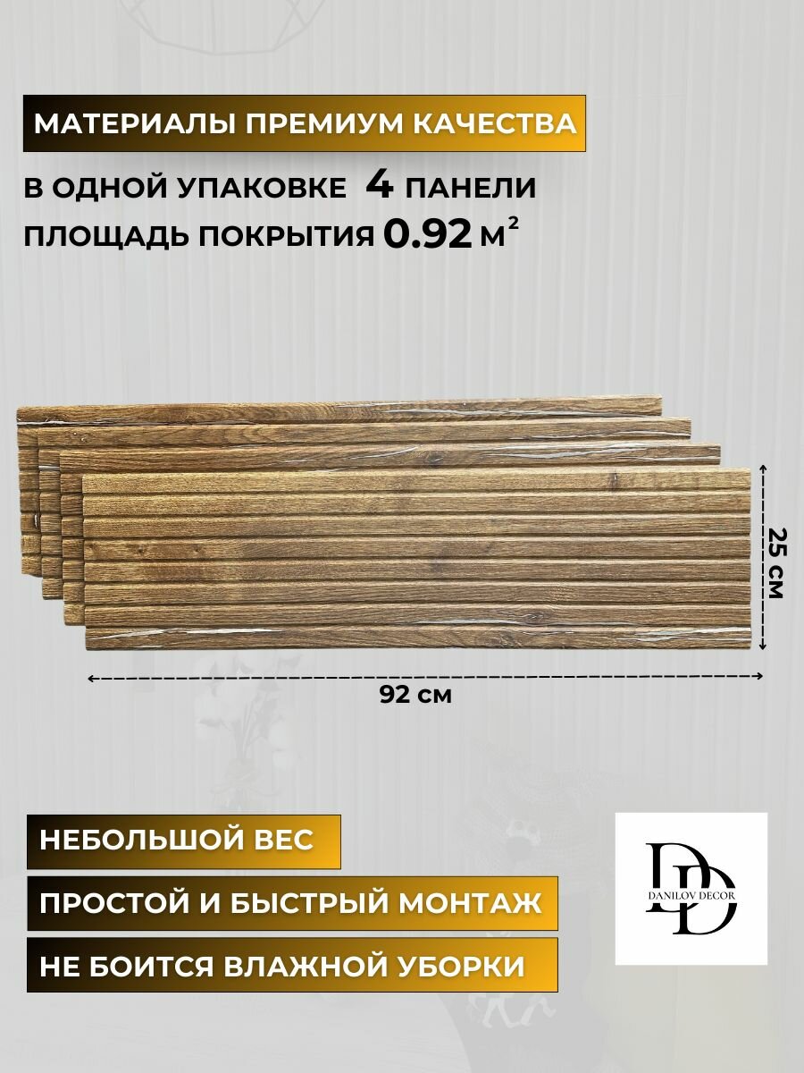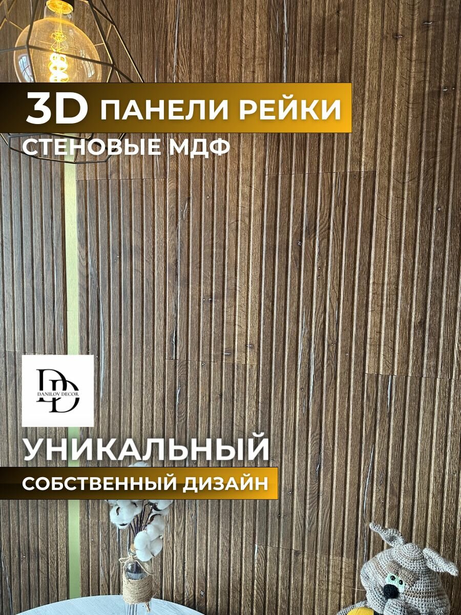 Панель МДФ, Декоративные панели на стену, Стеновые панели 3D МДФ "Бергамо"рейки шоколад в комплекте 4 шт DanilovDecor