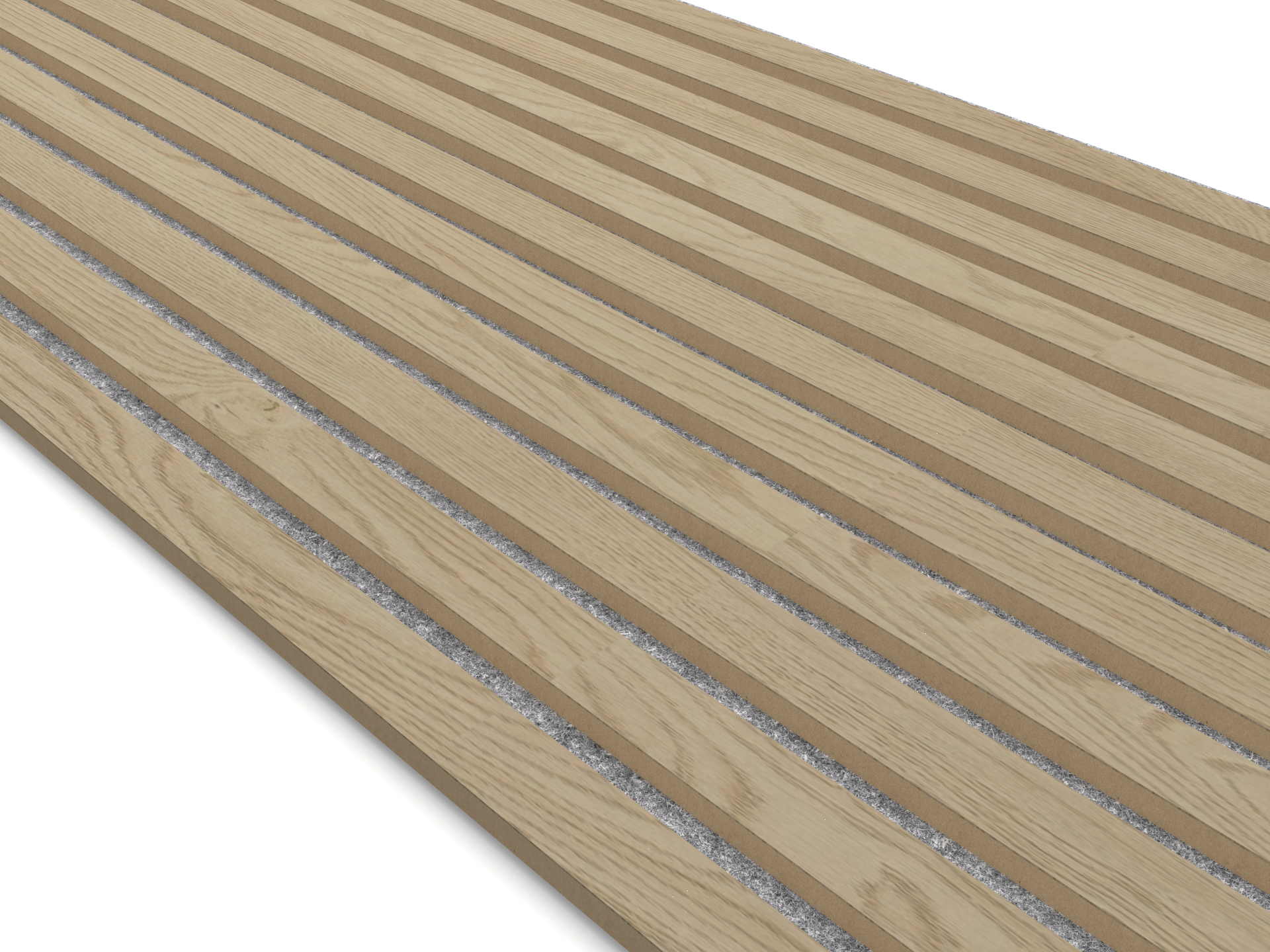 Акустическая реечная панель AKUPANEL - Декоративные рейки (Дуб Шпон) и серая акустическая панель Акупанель