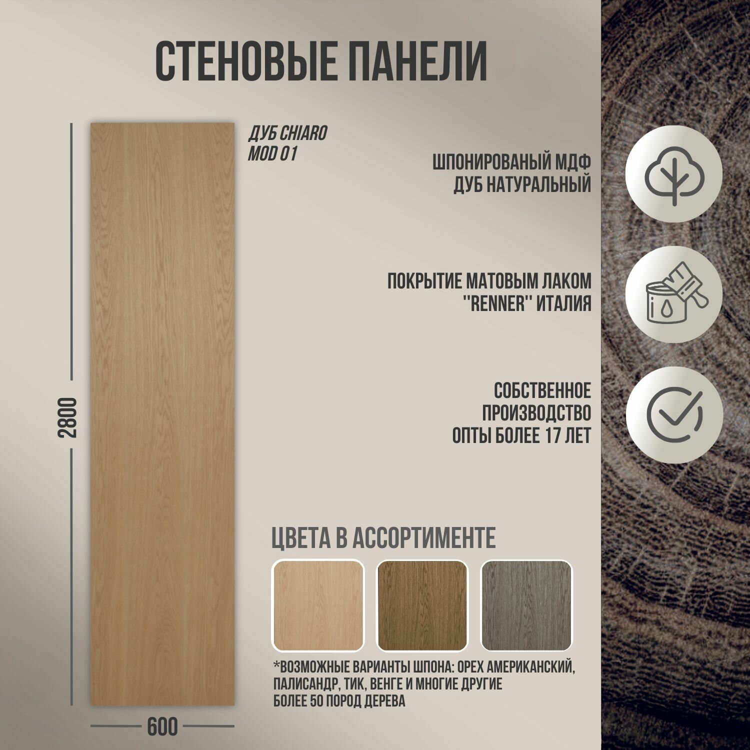 Стеновые панели из натурального дерева. Шпон Дуба MOD-01 "Сhiaro". 280х60см 1шт. интересное: