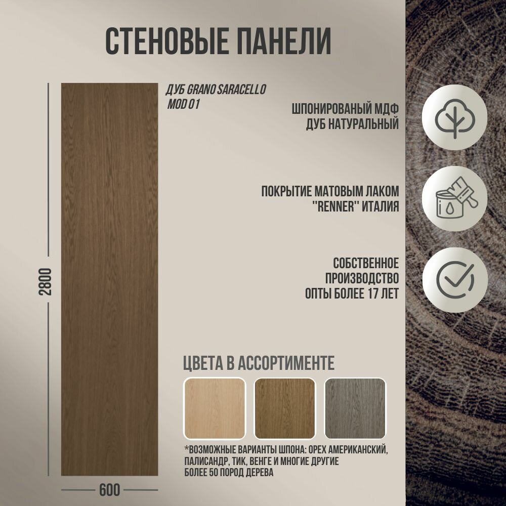 Стеновые панели из натурального дерева. Шпон Дуба MOD-01 "Grano Saracello". 280х60см 1шт. интересное:
