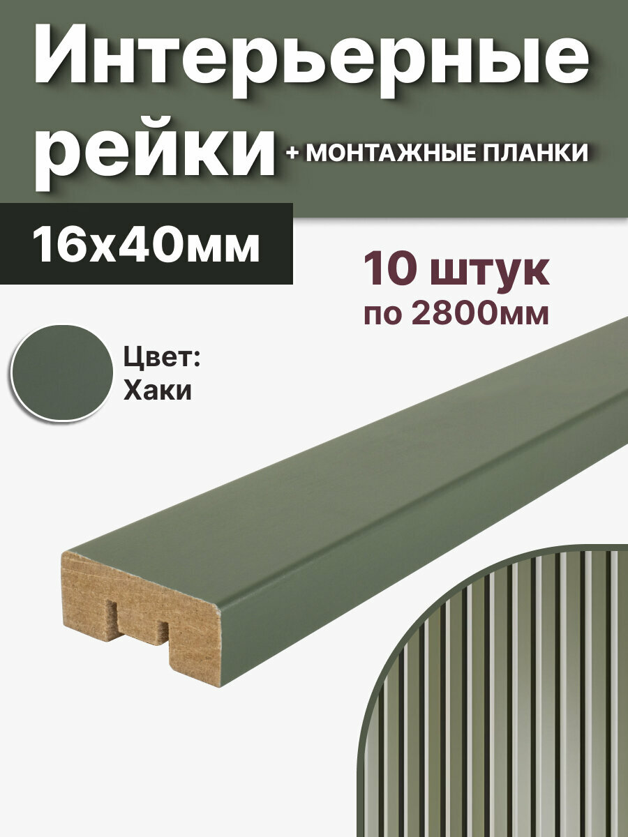 Купить Рейка интерьерная МДФ для стен и потолков, с монтажной планкой, 40*16*2800мм, 10 штук, цвет Хаки