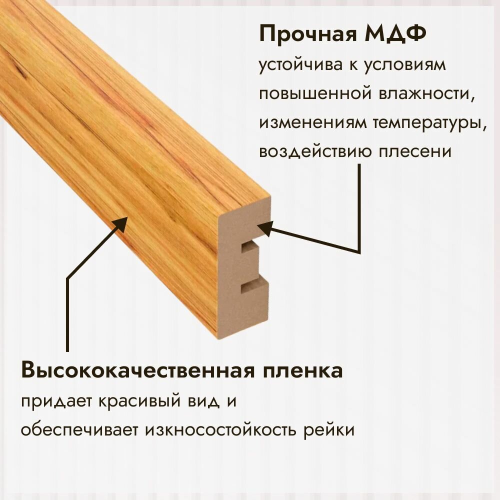 Рейка интерьерная МДФ для стен и потолков, с монтажной планкой, 40*16*2800мм, 10 штук, цвет Шимо Светлый