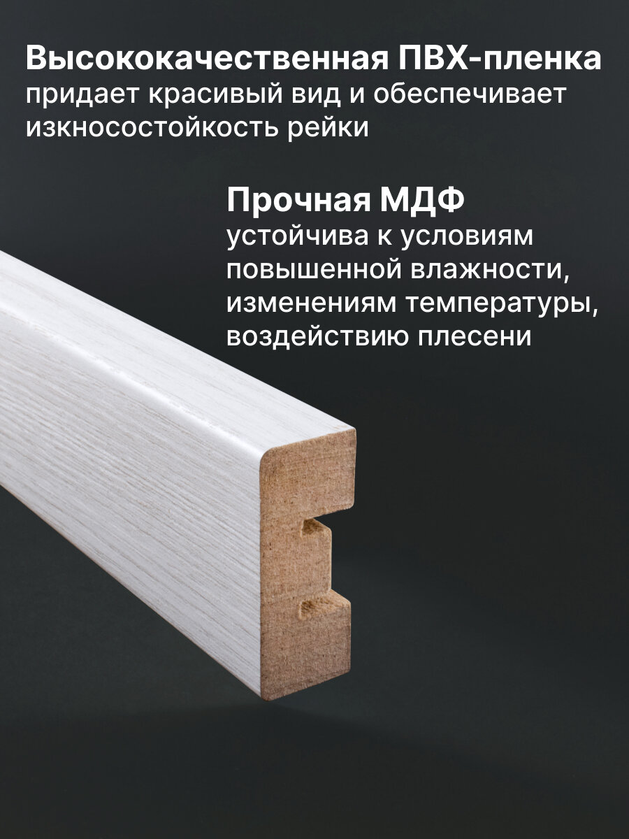 Рейка интерьерная МДФ для стен и потолков, с монтажной планкой, 40*16*2800мм, 10 штук, цвет Дуб Крафт Белый