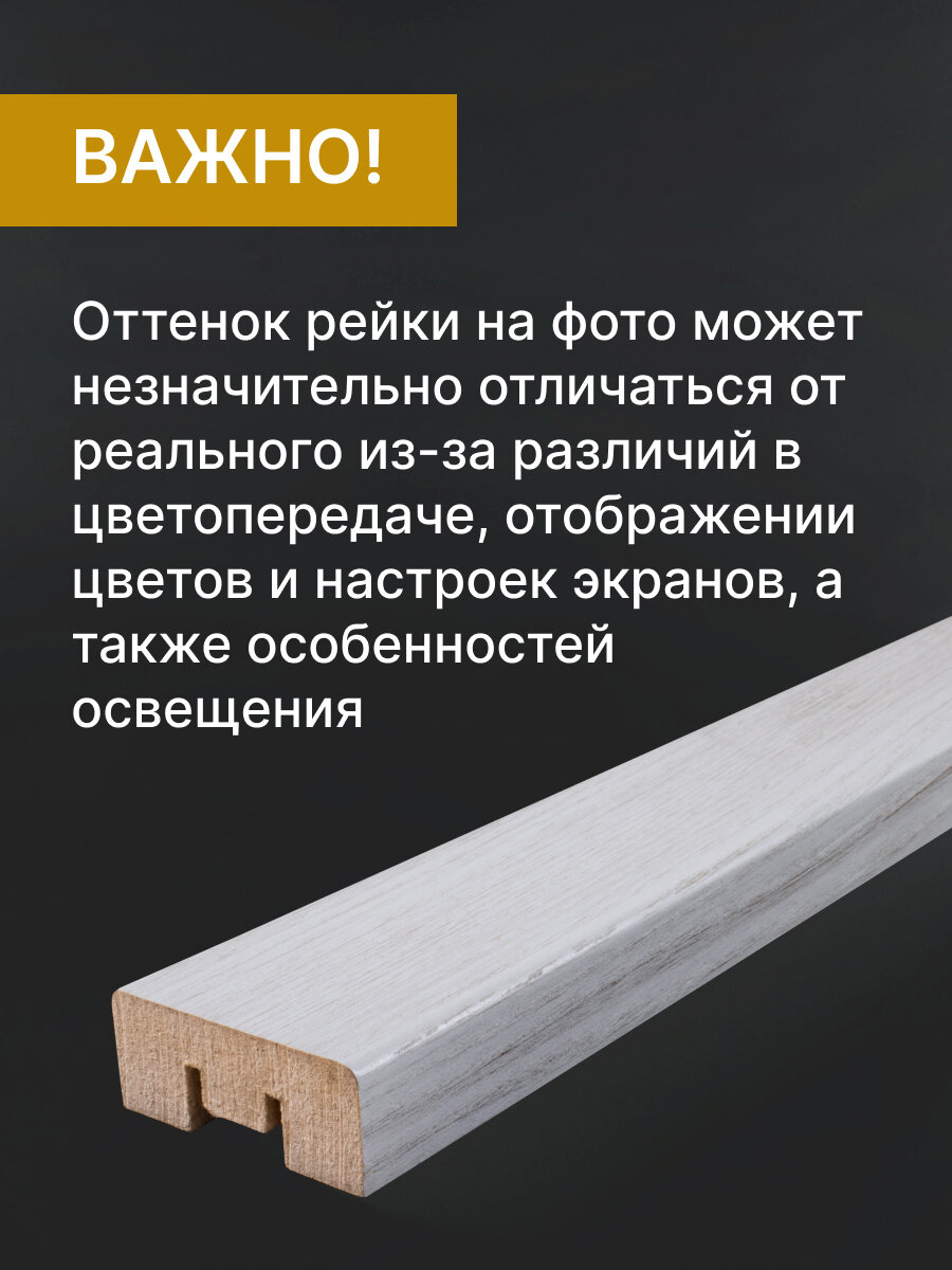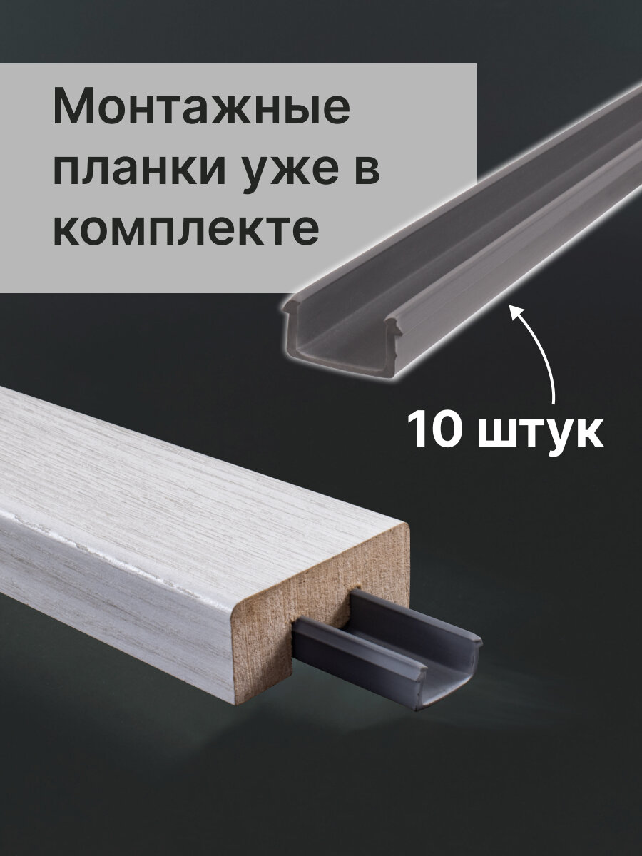 | Подробная комплектация | Интерьерная рейка - 10 шт. Монтажная планка - 10 шт. |