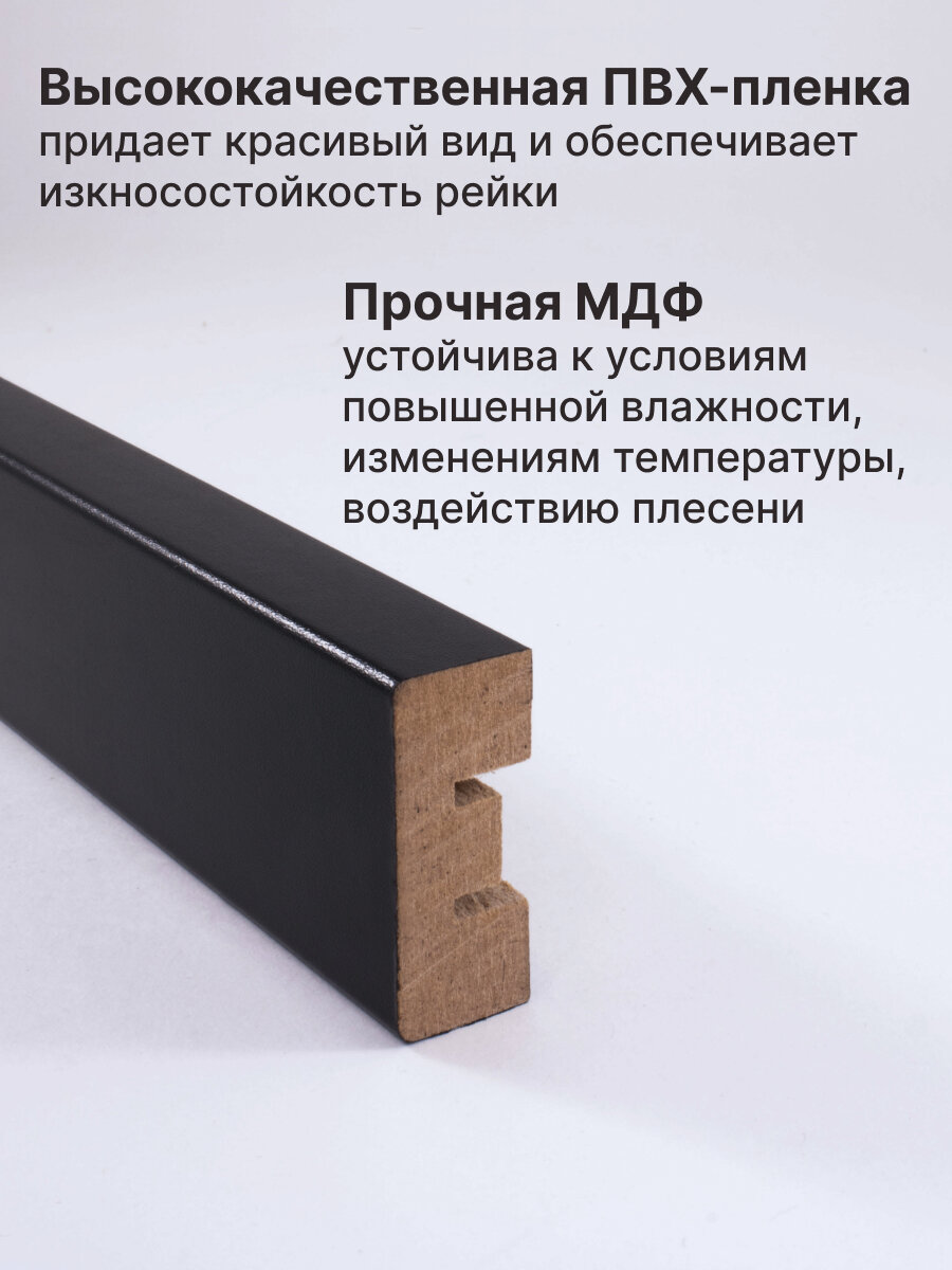 СохранитьРейка интерьерная МДФ для стен и потолков, с монтажной планкой, 40*16*2800мм, 10 штук, цвет Черный интересное: