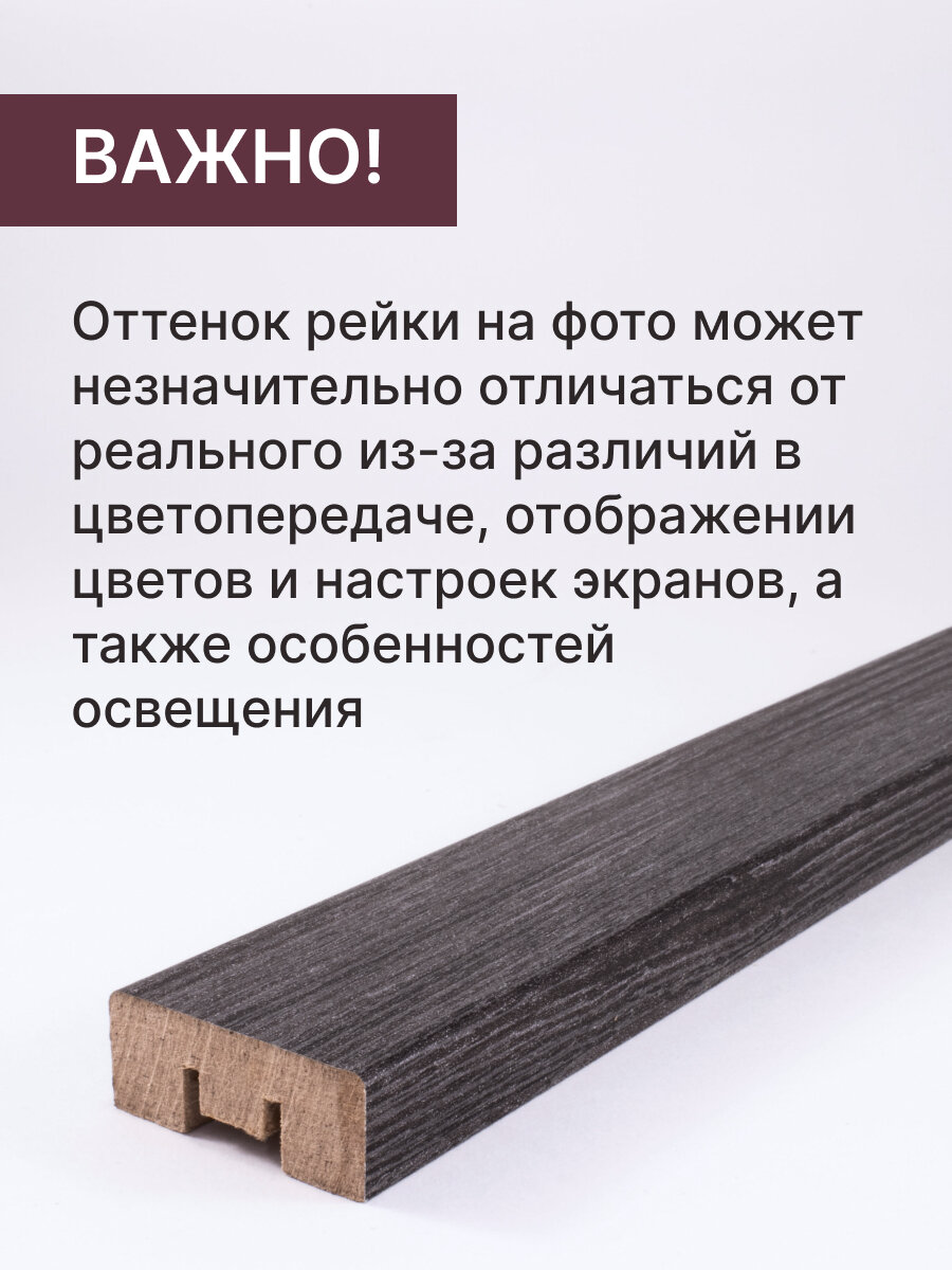 Рейка интерьерная МДФ для стен и потолков, с монтажной планкой, 40*16*2800мм, 10 штук, цвет Бетон Темный